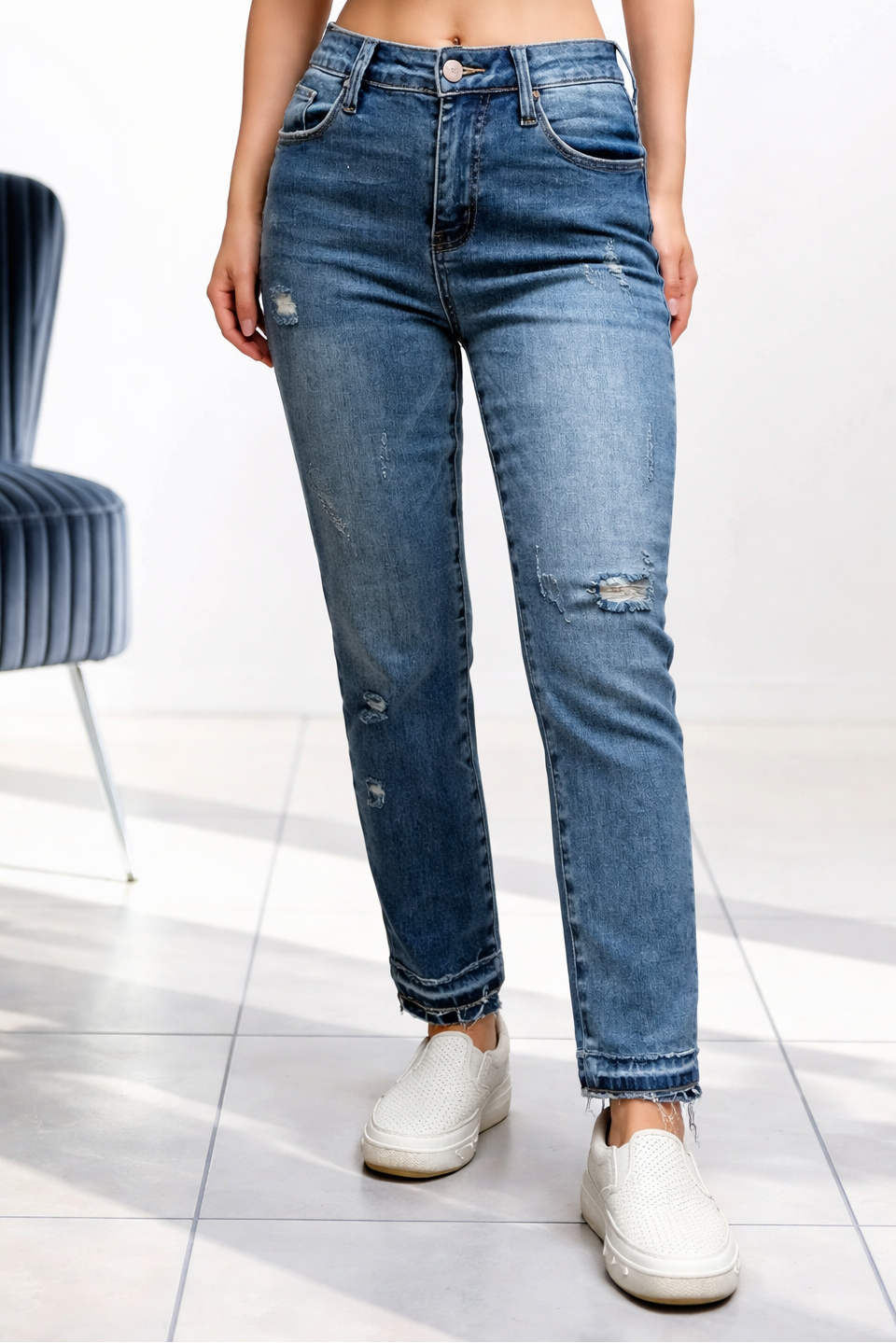 Get ready to step up your style game with our Risen Crops! These cropped jeans feature a flattering mid-rise fit and just the right amount of stretch for all-day comfort. With a trendy medium wash and subtle distressing, these jeans will take your outfits to the next level!