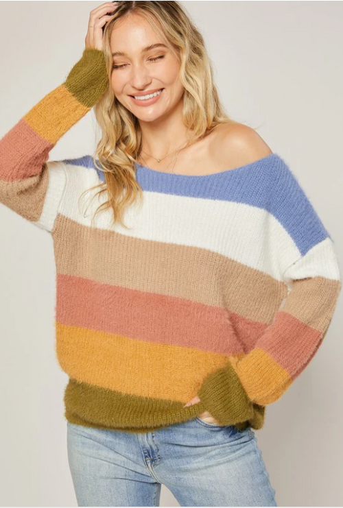 On a Roll Ribbed Knit V Neck Long Sleeve Top