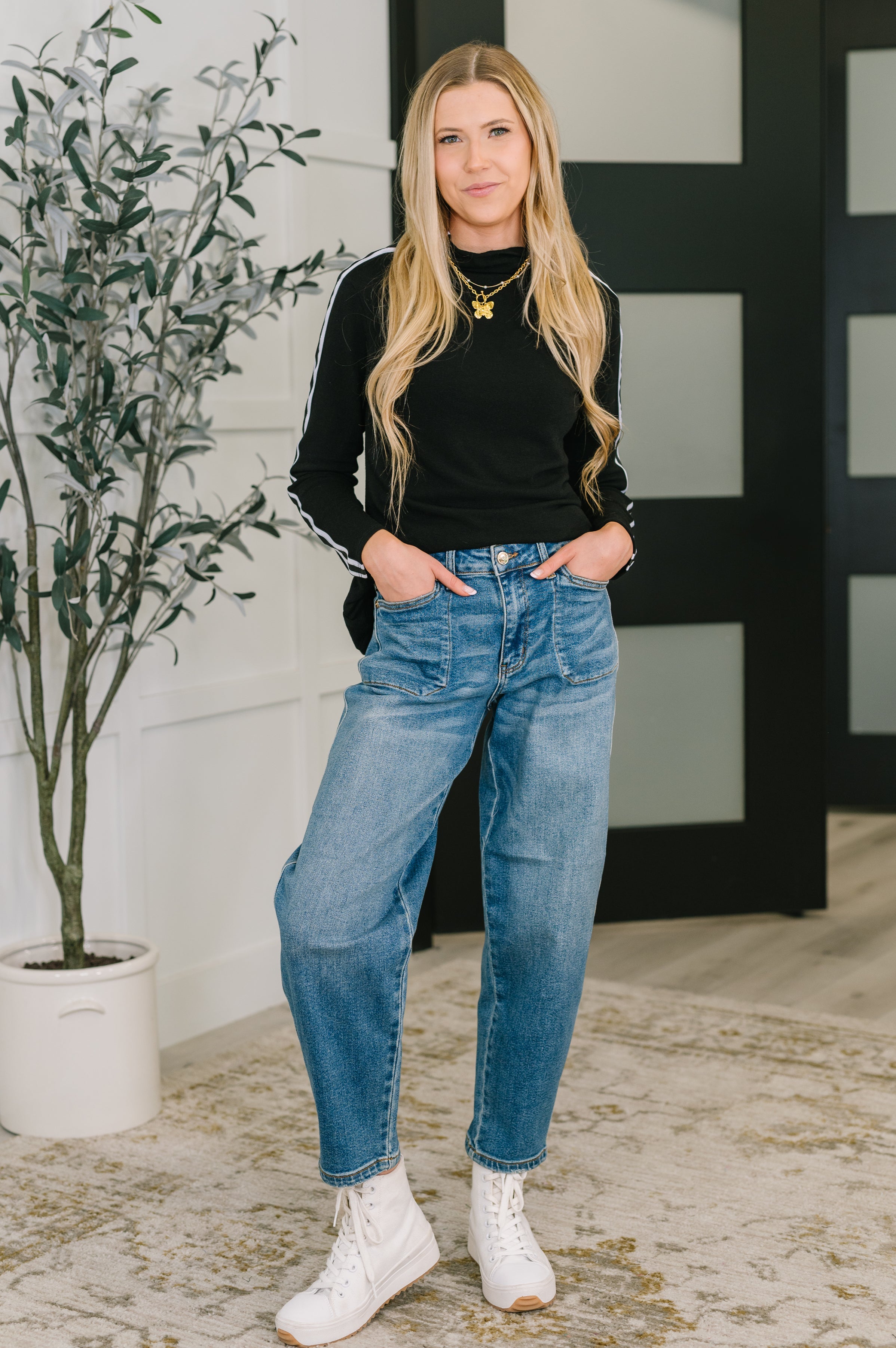 The Live Fast High Neck Pullover combines light to mid-weight knit with high stretch for cozy comfort and easy movement. This playful piece features a chic high neckline and long sleeves, accented with a fun ribbon detail that adds a touch of flair to your everyday look. Perfect for staying stylish on the go!